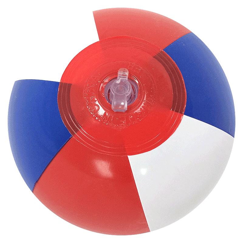 Tiny 6-Inch Red, White and Blue alternating panel Beach Ball with Red End circles and safety valve. When fully inflated these 6-Inch Beach Balls inflate to about 5-Inches high or diameter.