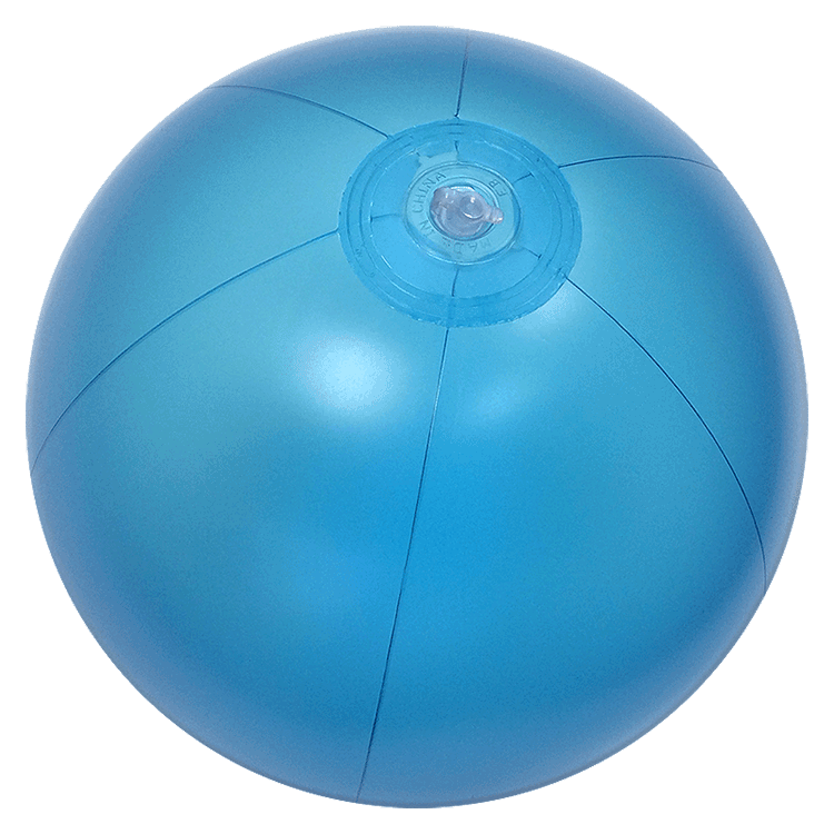 A frosted-type PVC Plastic material that is not see through but not solid and provides a unique color and look for your Beach Ball. This 12-Inch Deflated Size Shimmer (we call it) Blue Colored Beach Ball features nice design and non-scratch safety valve for easier and safe inflation. When fully inflated, this Beach Ball is about 9-Inches high or diameter as all Beach Balls are measured deflated. Available in larger sizes.