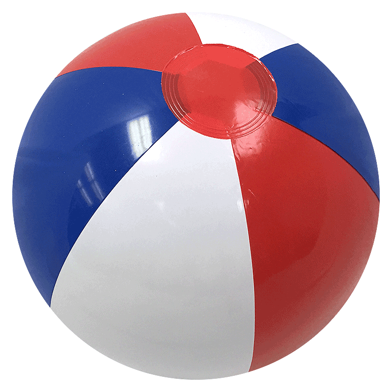Alternating Red, White and Blue panels on these 16-Inch Deflated Size Beach Balls. These Beach Balls, when fully inflated, stand about 12-Inches high or diameter. Comes with a regular non-scratch safety valve for easier inflation.